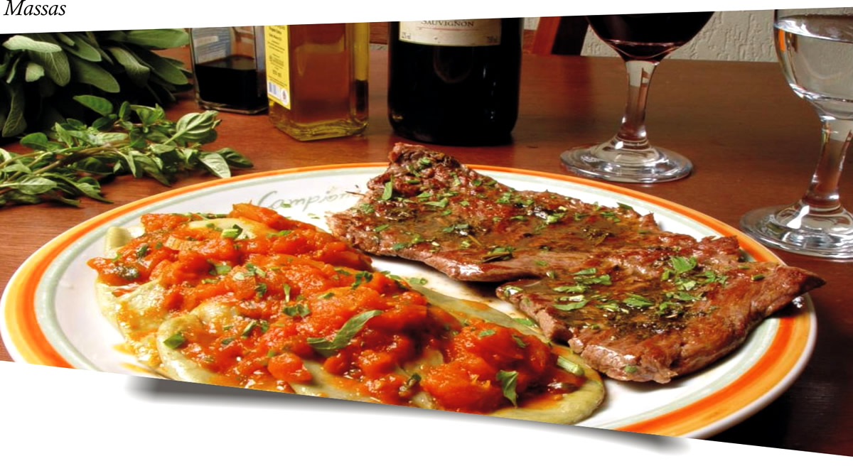 | CARNES FILETO ALLA CAMPIONEgrelhado ao molho de ervas, guarnecido de Mezzalunas verdes de tomate seco,